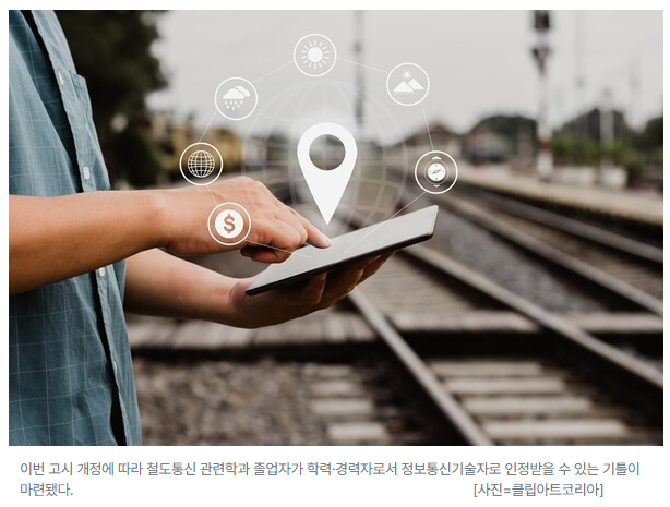 이번 고시 개정에 따라 철도통신 관련학과 졸업자가 학력·경력자로서 정보통신기술자로 인정받을 수 있는 기틀이 마련됐다.